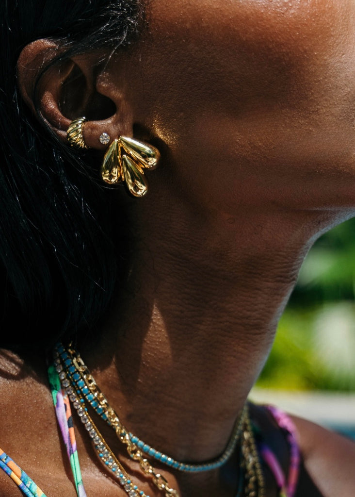 Elevate your style with the Becky Statement Earring. Made of three stunning raindrop shapes, these earrings will make a bold statement. Show off your daring and adventurous side with this eye-catching accessory.