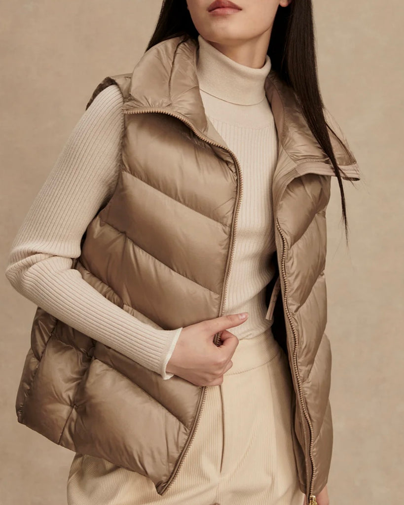 Made for transitional layering, the Bextor gilet is an elegant top layer that offers lightweight warmth in a stylish silhouette. Crafted from Super Light Ripstop fabric with a soft pocket lining and an insulating down fill, it is super comfortable to wear, while keeping the cold out. Complete with an internal waist cinch, double-ended zips, and a zip-through collar with a Varley-branded puller.