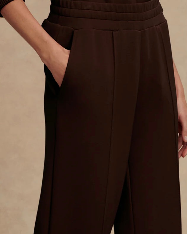 Experience unmatched comfort and style in these DoubleSoft® pants. Featuring a high-rise waist, wide-leg silhouette, elasticated waist with internal drawcord, and elegant pink tuck detailing, they're a versatile wardrobe essential.