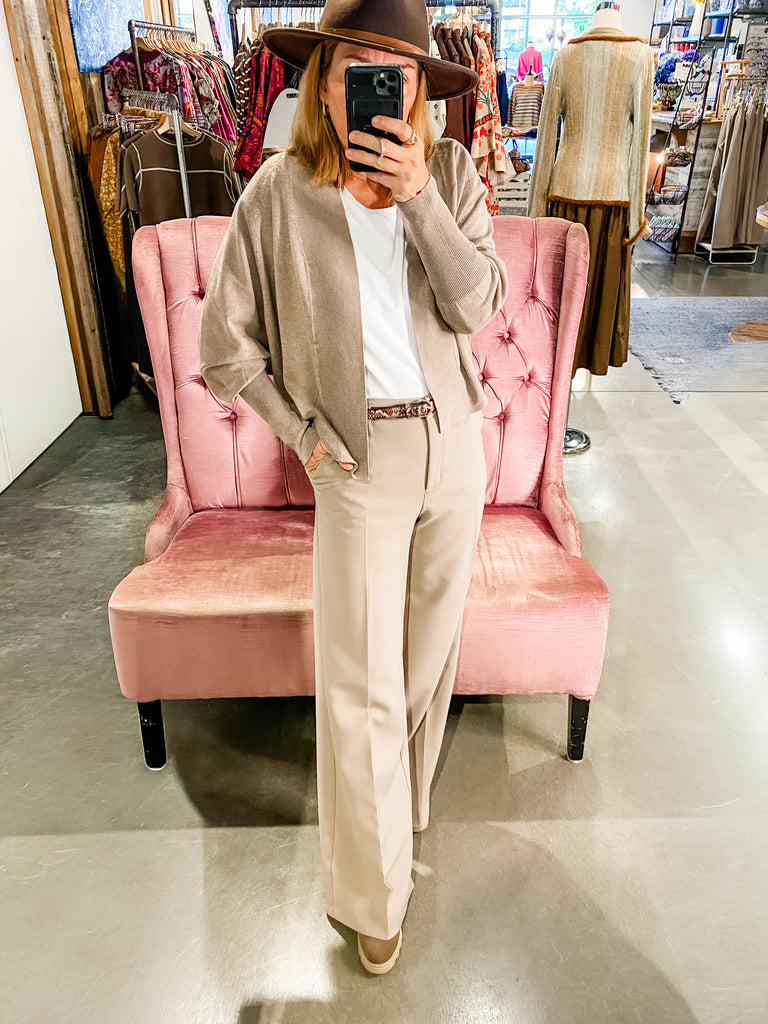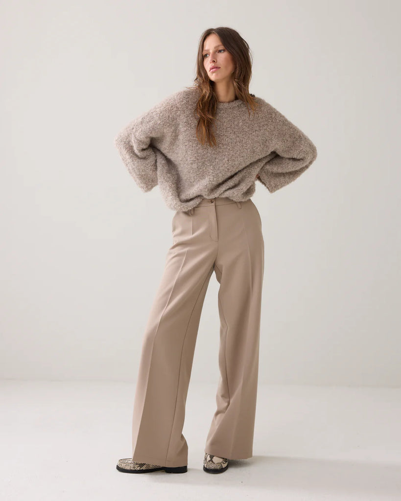 Summum’s bestseller foam trousers with wide legs. The trousers have an elasticated waistband and slit pockets at the front and strip pockets at the back.