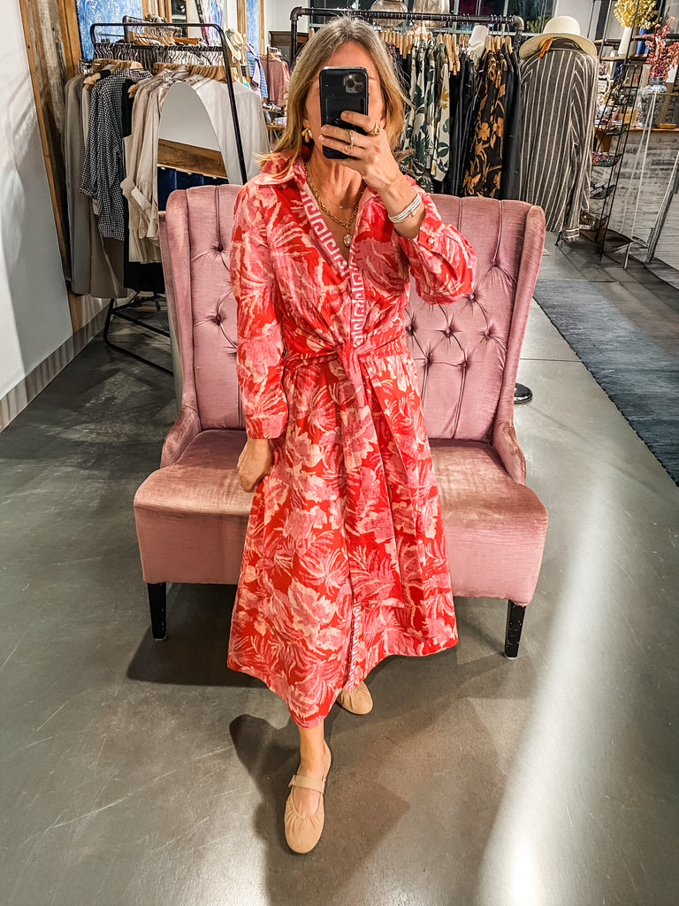Elegant and inherently classic, the Mable’s Dress is designed to define the silhouette with ease. A tie waist, seamlessly attached at the side seams, can be tied at the front or back. Finished with long sleeves and a refined button front, it balances structure and softness—an enduring piece suited for both polished daytime moments and elevated evenings.