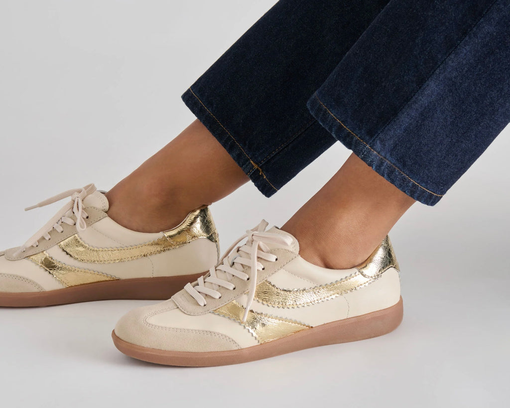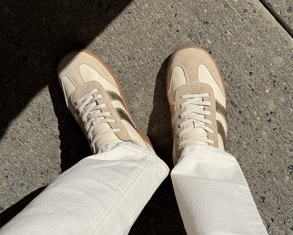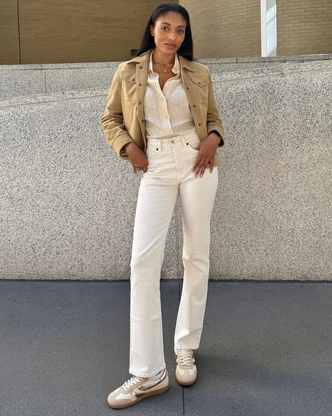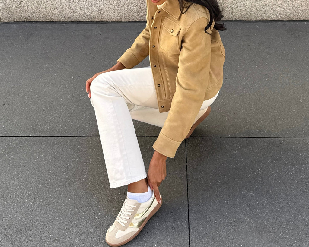 MERIT takes the classic white leather sneaker and adds a much-needed pop of color and personality. Her sporty sole is elevated by a subtle mix of materials and textures. Style her with pull-on trousers or dresses.
