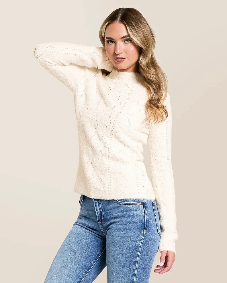 Embrace the season in timeless elegance with the Milly Sweater. This cream-colored pullover features intricate pointelle detailing and a sophisticated cable knit pattern that adds texture and dimension. Crafted with Z Supply's signature quality, this versatile sweater offers both warmth and style for all your seasonal gatherings.