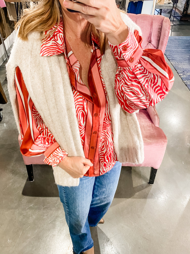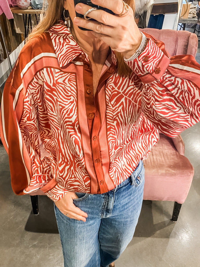 This Barry Zebra Blouse brings bold stripes to the spotlight, effortlessly taking you from the office to an evening out. Its silky satin finish adds a touch of luxury, while the playful pattern lets your personality shine. Perfect for mixing professional chic with a dash of fun!